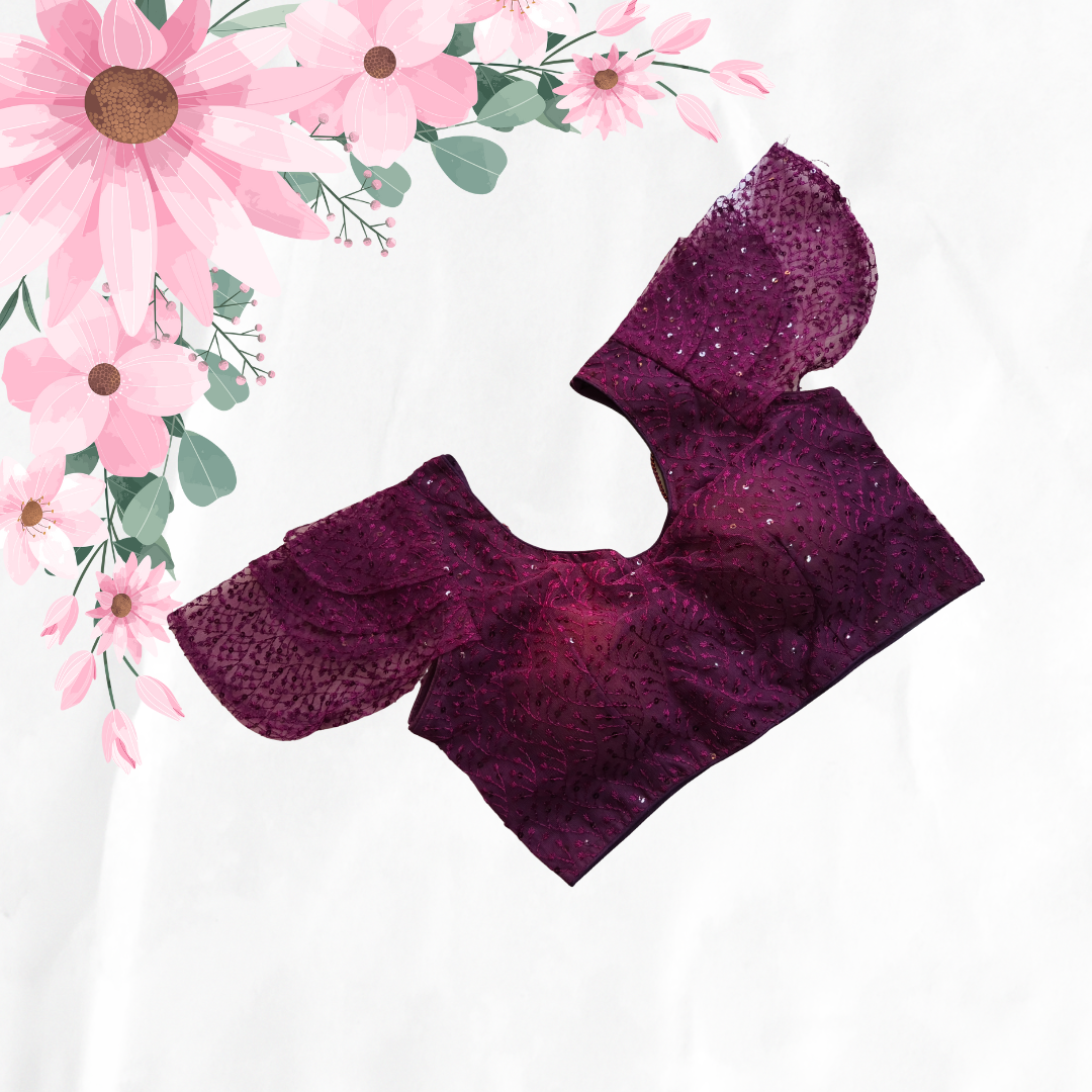 Step into elegance with this stylish black shimmer saree blouse, designed to make a bold yet classy statement. Crafted from premium shiny silk fabric and embellished with delicate stone work, this blouse offers the perfect blend of sophistication and glamour.