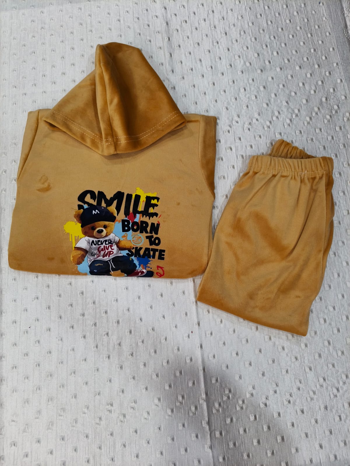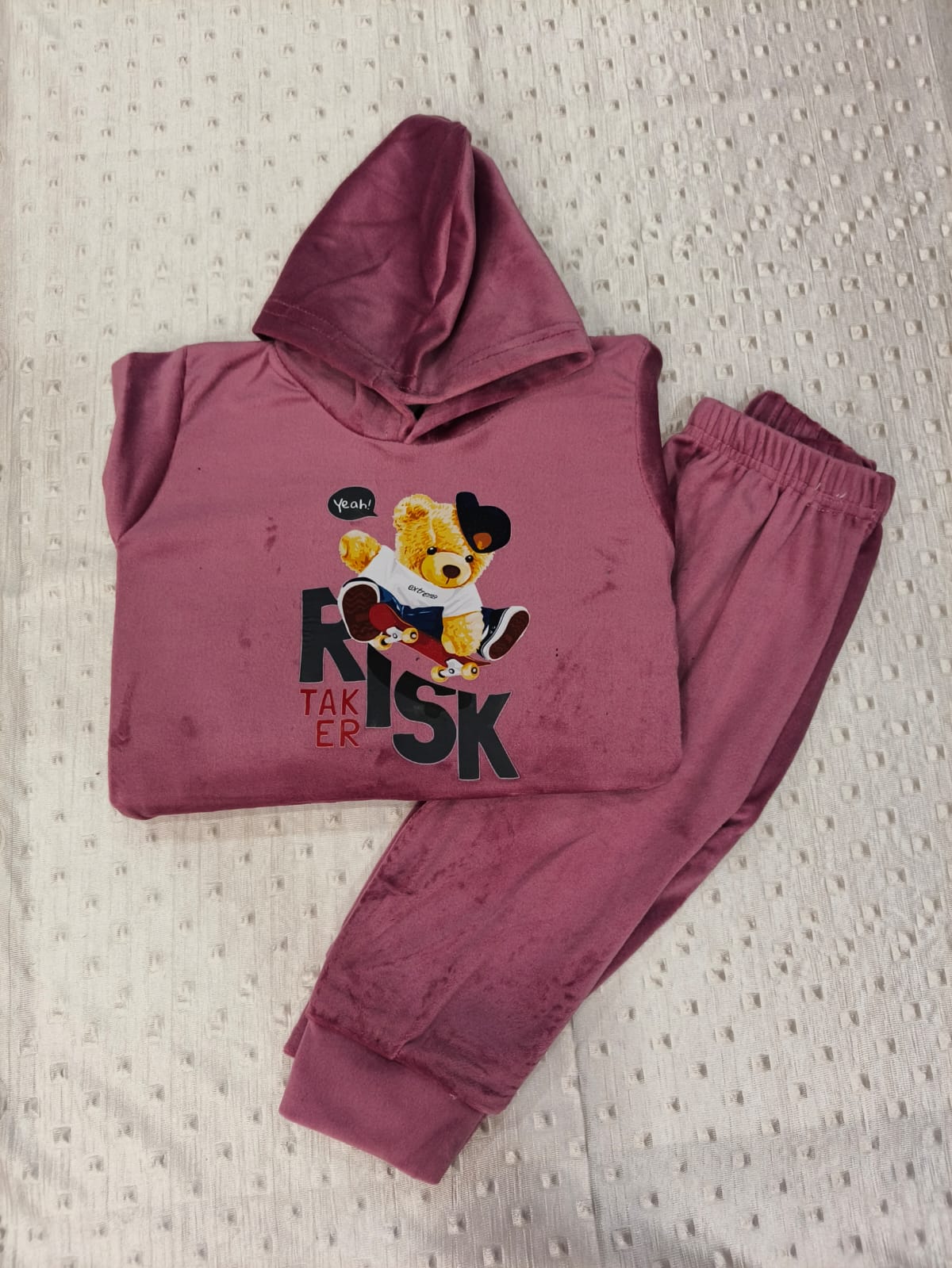 The matching velvet pants offer a relaxed and snug fit, allowing kids to play freely while staying comfortable all day long. A perfect combination of style, warmth, and softness for toddlers.