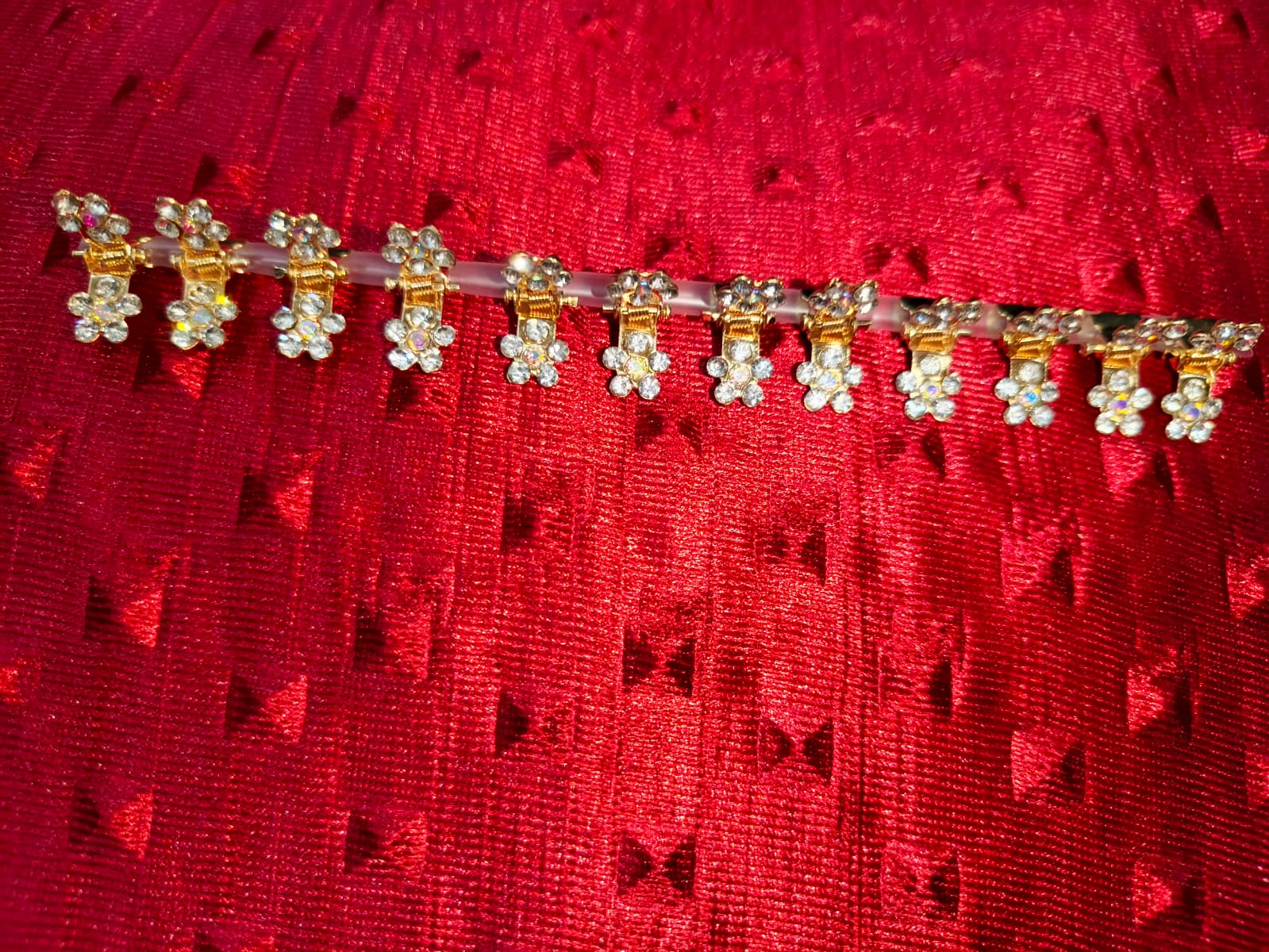 Add a touch of floral elegance to your style with this stunning Flower Cluster Rhinestone Bracelet. Designed with delicately arranged flower-shaped clusters, each petal sparkles with high-quality rhinestones that catch and reflect light beautifully.