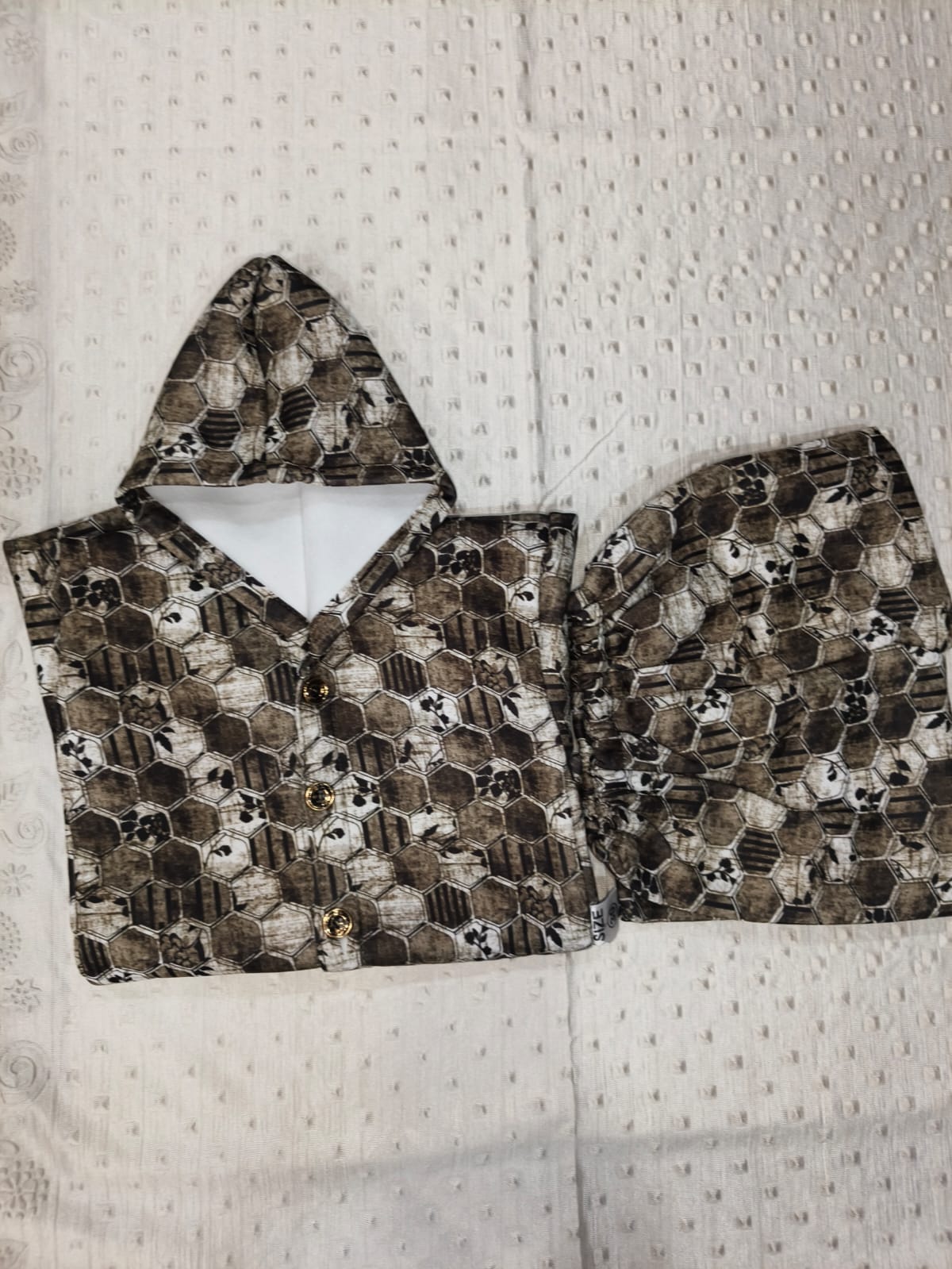 Hooded Sweatshirt: Comes with a warm hood and front button closure for easy dressing and extra protection from cold.