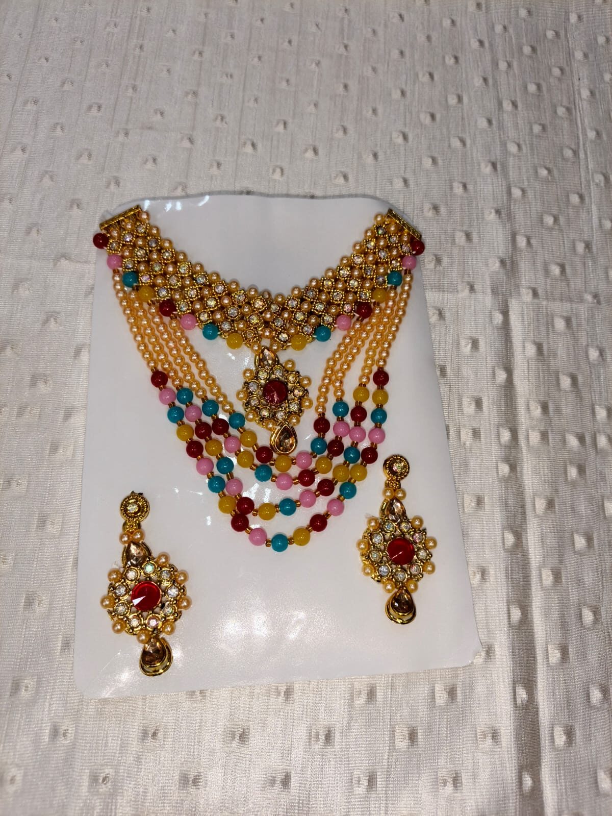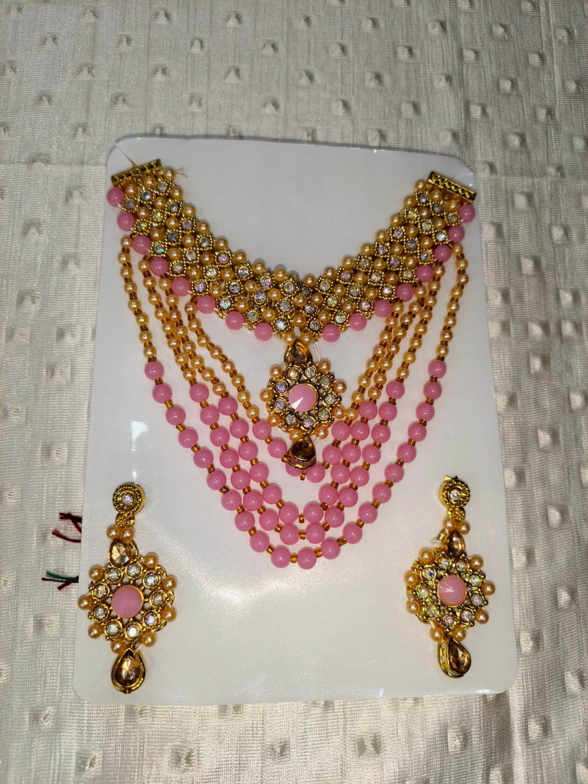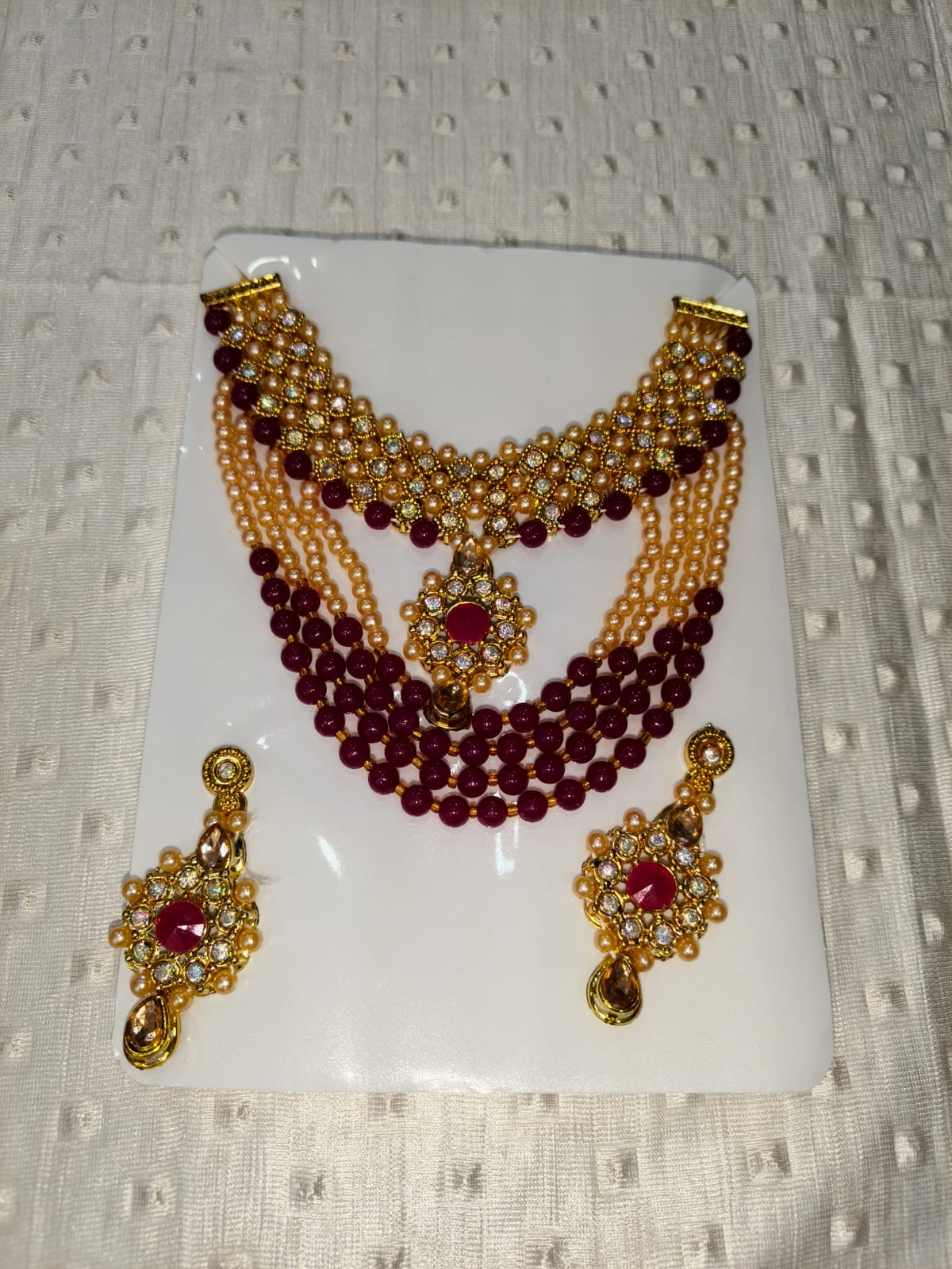 • Complete Set: Choker Necklace + Matching Earrings + Maangtikka